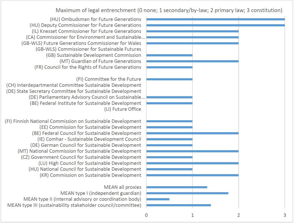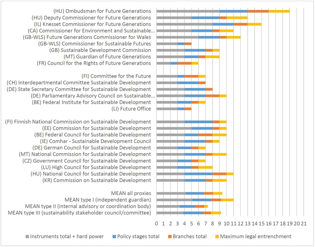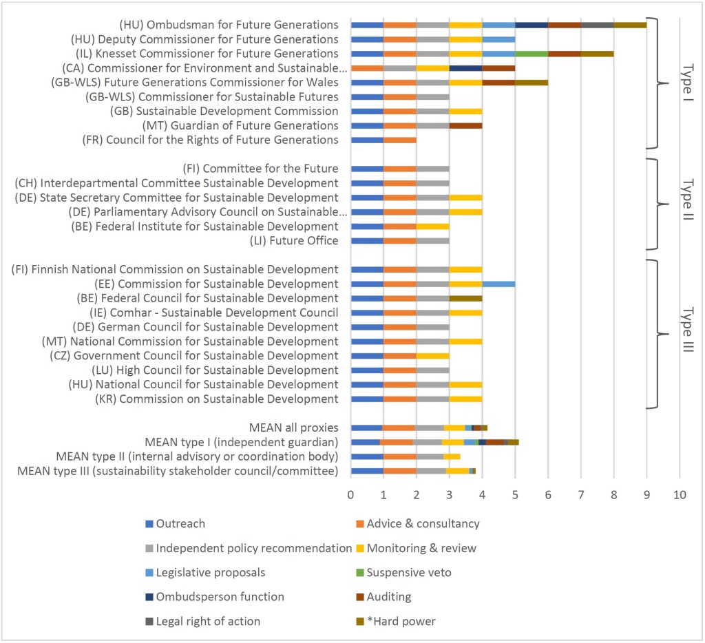 In my article “Institutional Proxy Representatives of Future Generations: A Comparative Analysis of Types and Design Features”, I formulated the notion of institutional proxy representation of future generations to provide a theoretical foundation for these institutional advancements. Furthermore, I applied this concept to build a comprehensive inventory of empirical instances of institutional proxy representation across democracies worldwide. Through this analysis, I identified 25 institutions for future generations – or “proxies” – in 17 democracies.