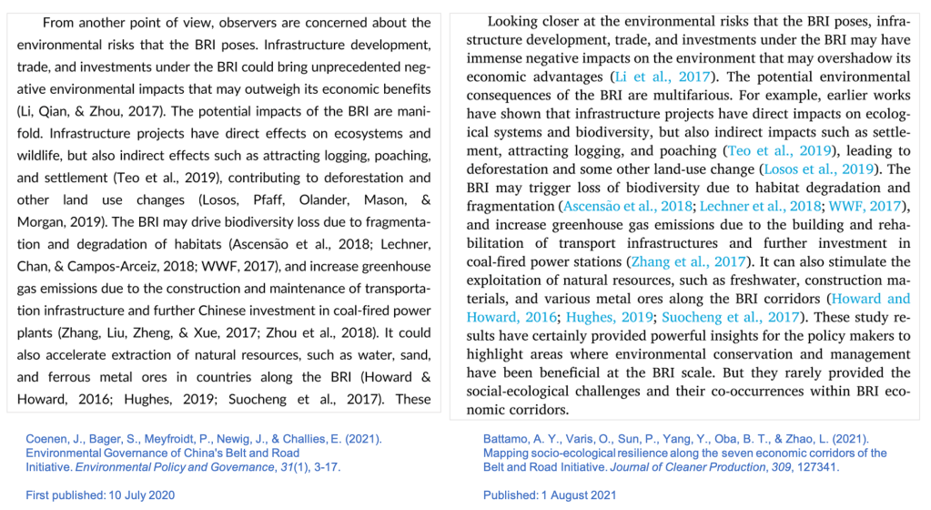 Coenen J, Bager S, Meyfroidt P, Newig J, Challies E. Environmental Governance of China’s Belt and Road Initiative. Env Pol Gov. 2020;1–15. https://doi.org/ 10.1002/eet.1901